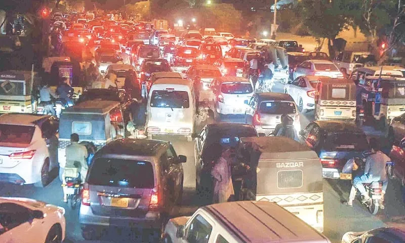 ڈرگ روڈ کے قریب شدید ٹریفک جام کی اطلاع ہے، گاڑیوں کی لمبی قطاریں لگ گئی ہیں، شہری پھنسے ہوئے ہیں اور اپنی گاڑیوں سے باہر نکل رہے ہیں۔